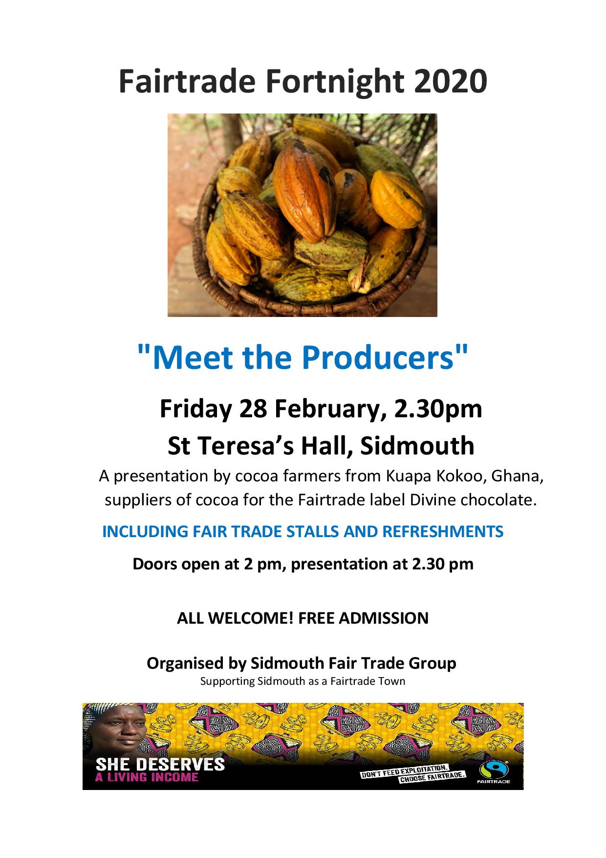 Chocolate producers will be visiting Sidmouth next week as part of the Fairtrade Fortnight.
