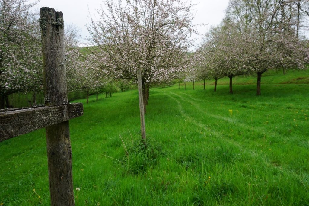 Silvopastoral field in Germany (Odernheim-am-Glann), with cattle (did not want to be photographed) and apple trees