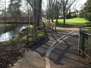 Even on a very small scale, as in this photo of a pedestrian bridge and a cycle path in the Byes in Sidmouth shows:
