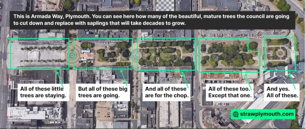 But it’s alright, because the local paper has been printing reassuring statements from the city council: Plymouth’s Armada Way tree replacement plan – everything you need to know – Plymouth Live and Plymouth’s £12.7m Armada Way scheme ‘is vital for future of city centre’ – Plymouth Live