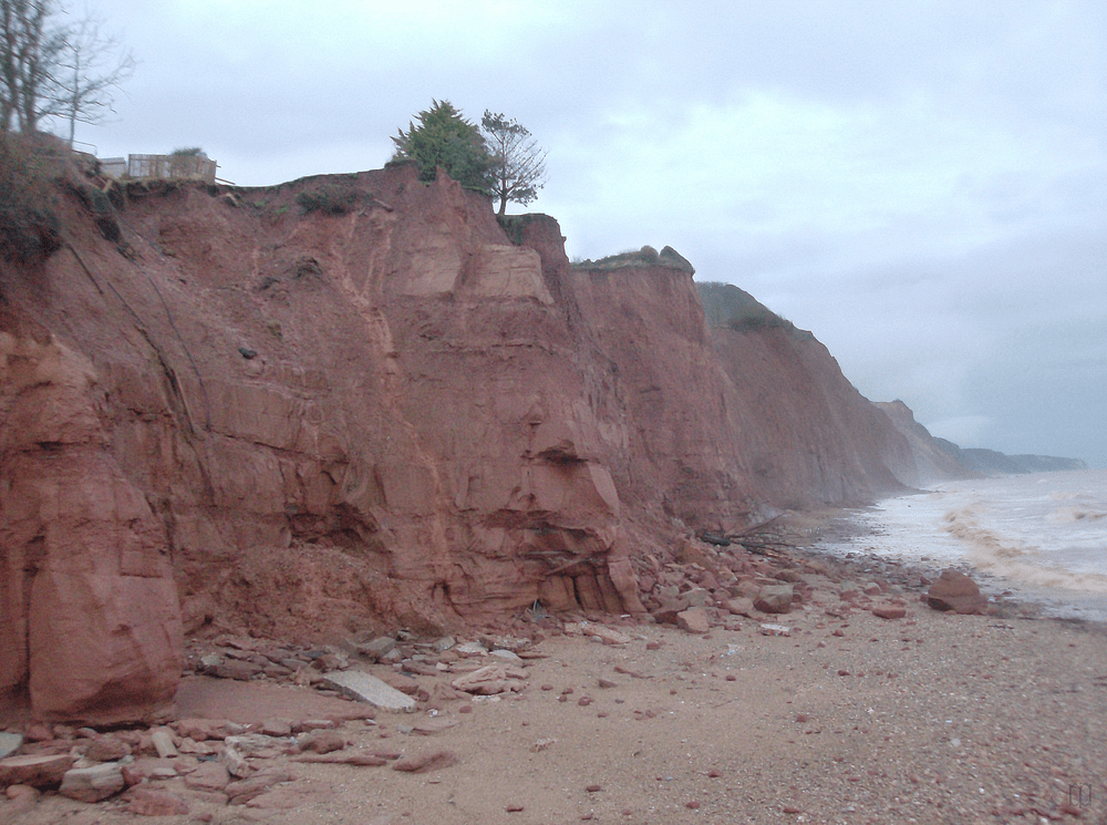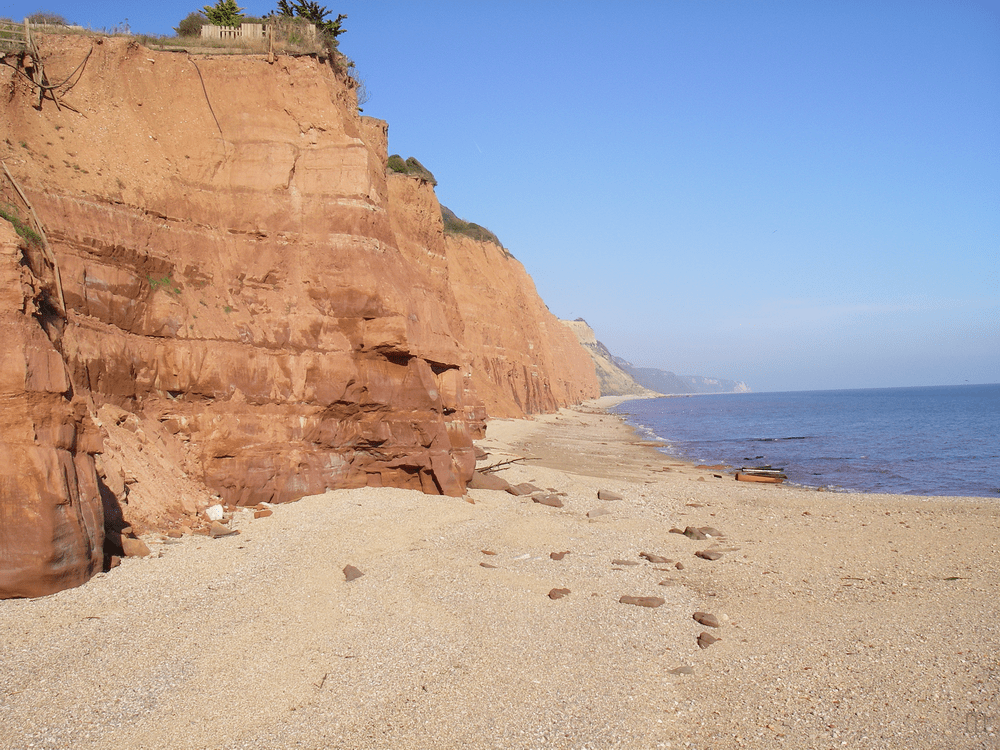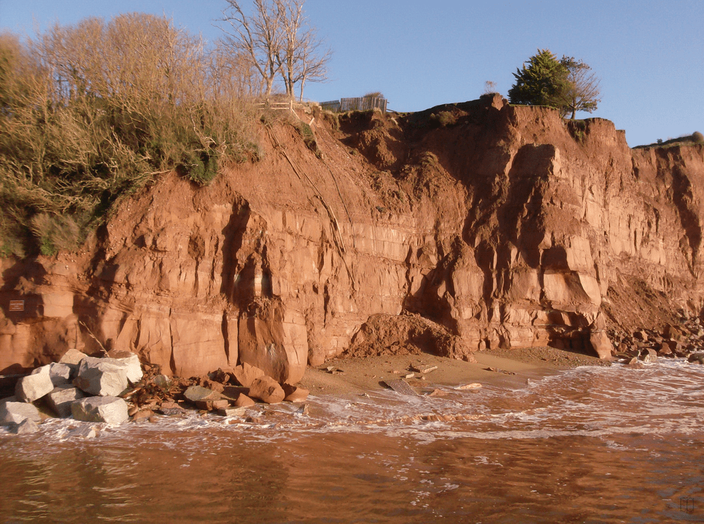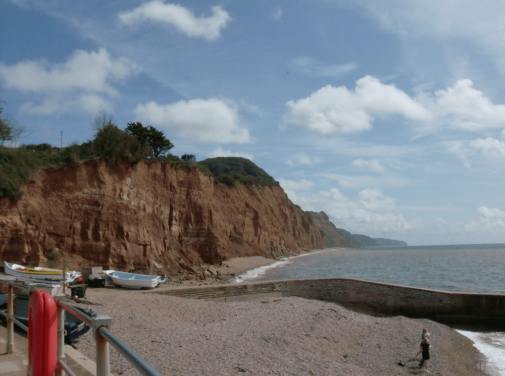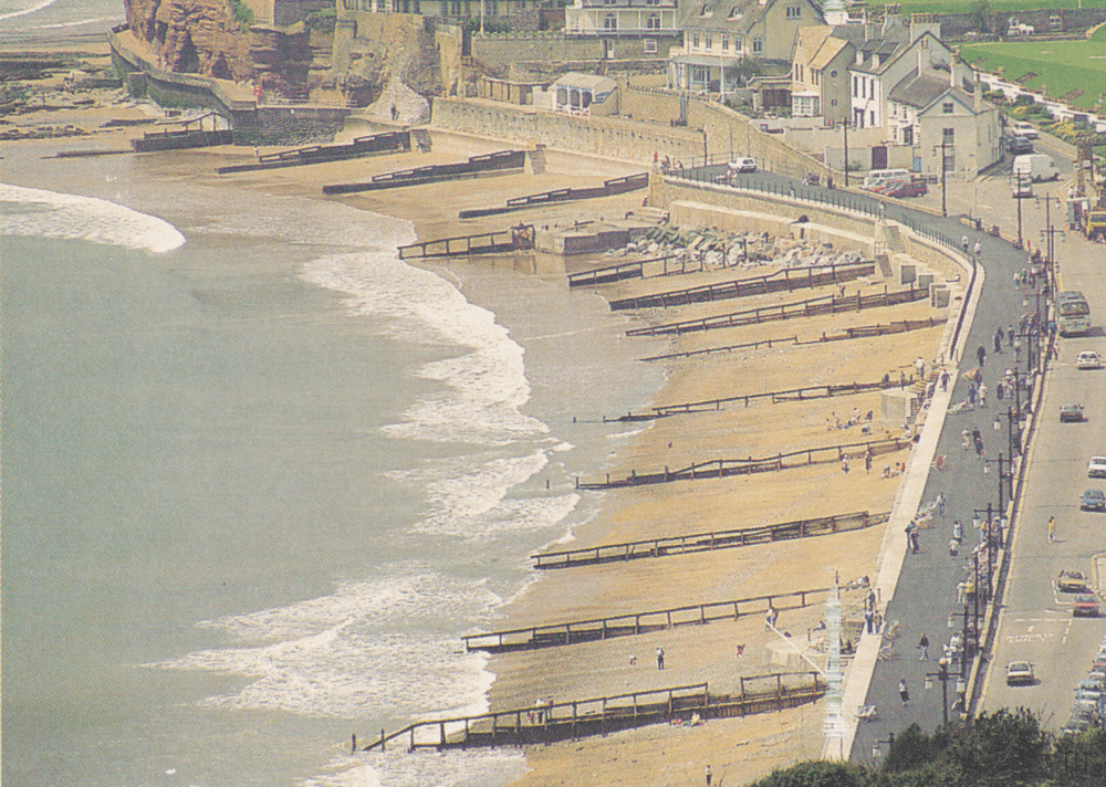 Sidmouth has had to protect itself from the sea since the 1800s; before that the bank of shingle gave good protection by itself but due to a variety of happenings, including the removal of shingle for building purposes and for sale, the shingle bank dwindled and human intervention was needed. This has been an ongoing battle with no real successes except the rock islands built in 1995. These rock islands have allowed a shingle and sand beach to accumulate at Clifton but have not helped elsewhere unless, perhaps, it be at Western, or Jacob’s Ladder, beach. The large amount of shingle at Eastern beach has been lost since the rock islands were put in place but there are differing opinions about whether this is due to the islands or some other change.