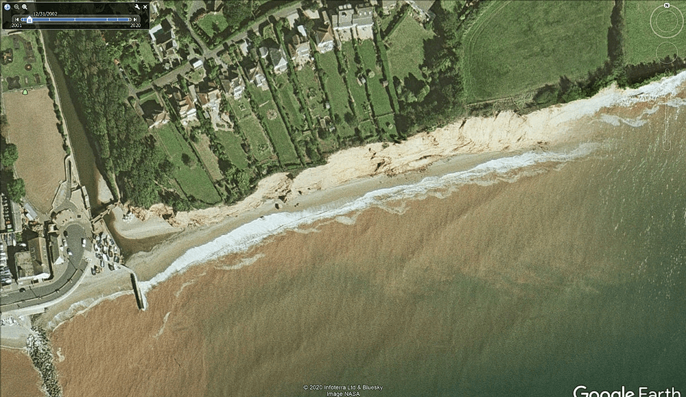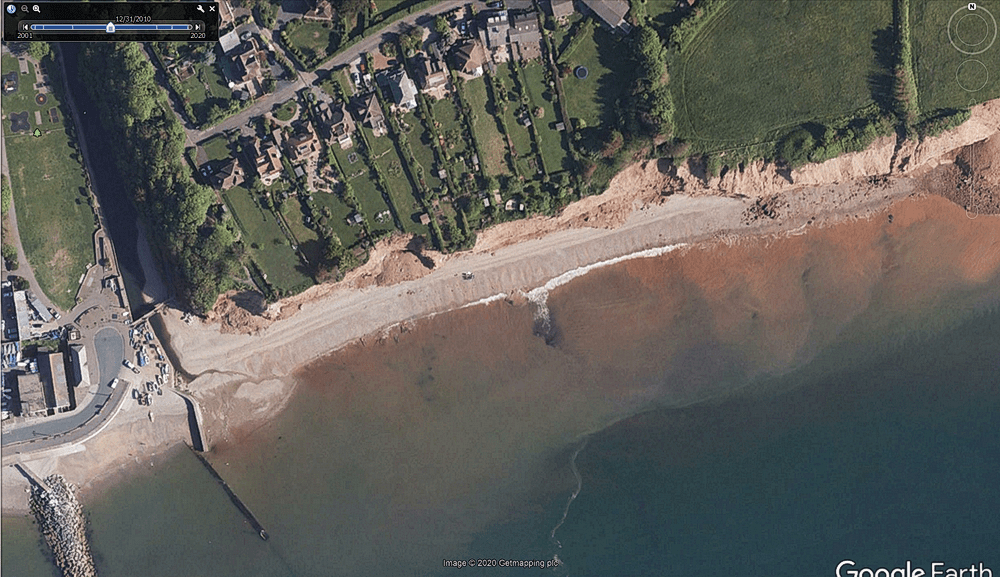 When considering the future it is always helpful to have a view of the things which have happened in the past; we are fortunate that pictures of Sidmouth have been taken since the 1860s and are available to inform us. These images show erosion of the cliffs to the east and how beach levels have varied over time.