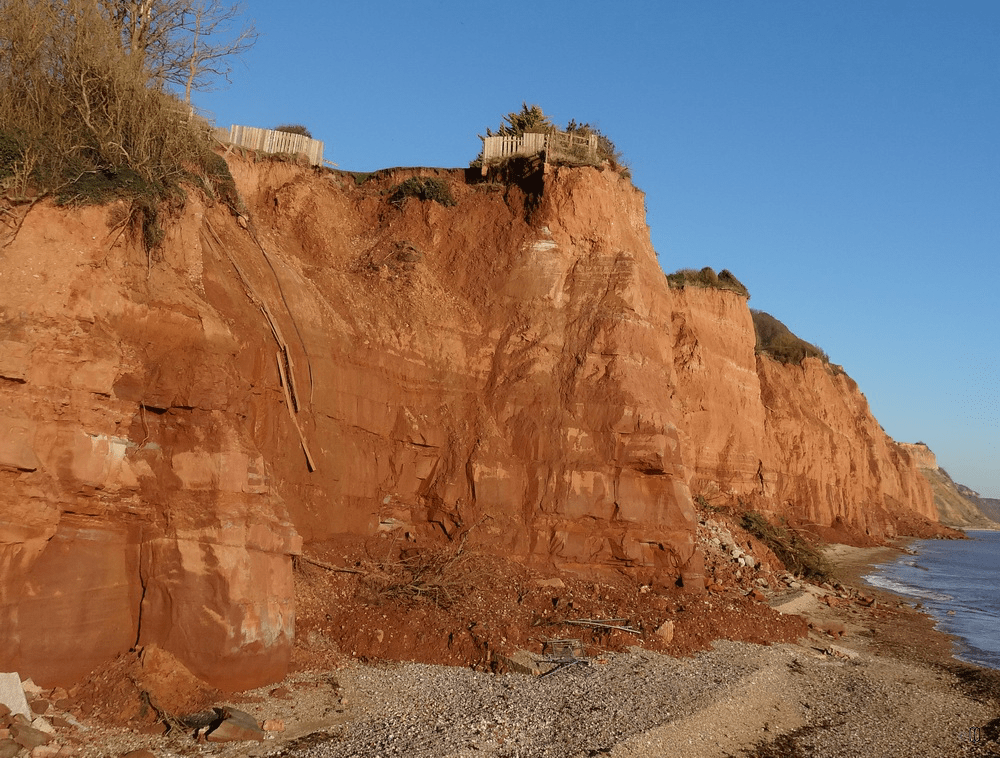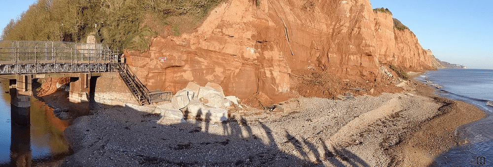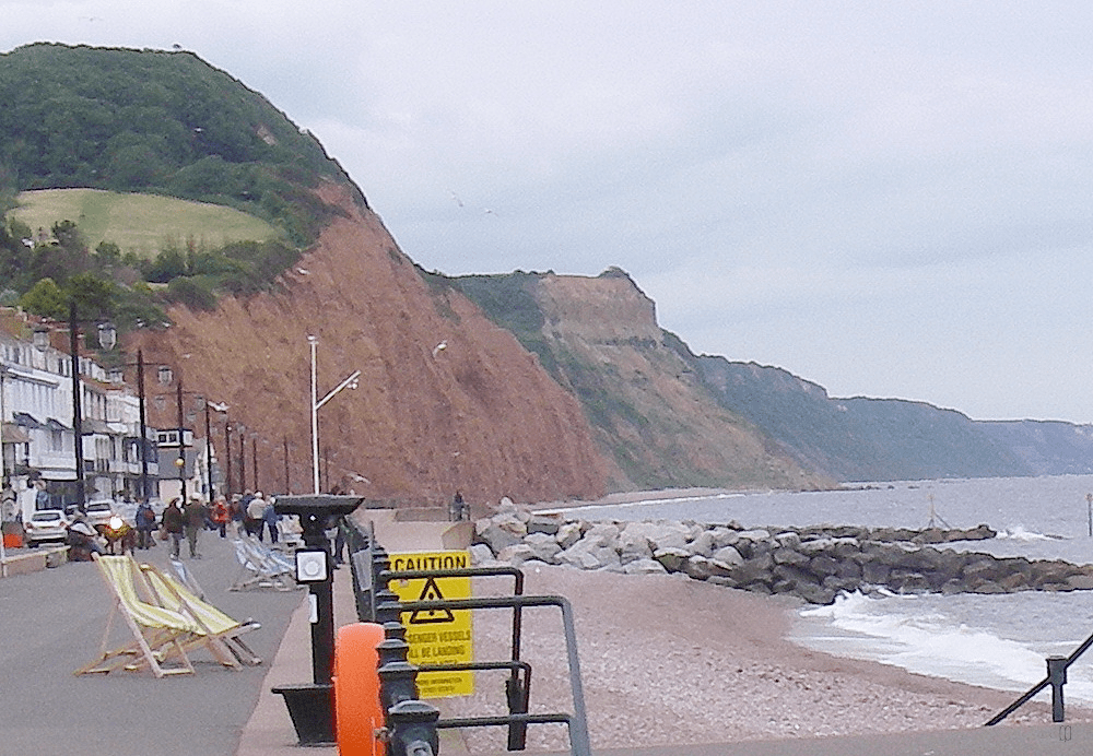 In 1928 a storm removed much of Pennington Point by the Alma Bridge at the mouth of the Sid, and in 1929 the Jubilee Flagstaff was taken down for reasons of safety. From 1930 to 1933 there were many falls at the same place and the loss of rock created a view from the Esplanade all along the cliffs.