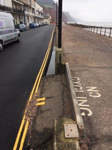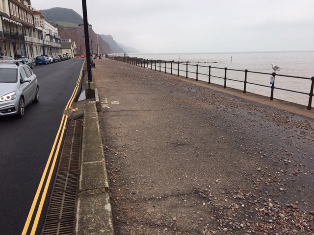 3) The camber on the Esplanade footway is not sufficient to return the water to the sea quickly or at all. Opposite York Terrace the sea water returns to the sea slowly but in front of the Drill Hall the water drains towards the dwarf wall instead of returning to the sea.