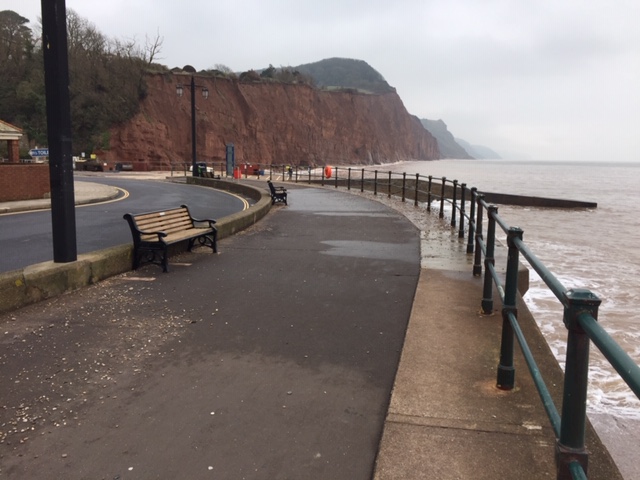 There was no sign that the lowest lying areas of the town had suffered any flooding yet Seaton suffered major damage. Reports are that the waves at Seaton were coming straight on to the sea defences, so at a slight angle at Sidmouth if the wave direction was constant.