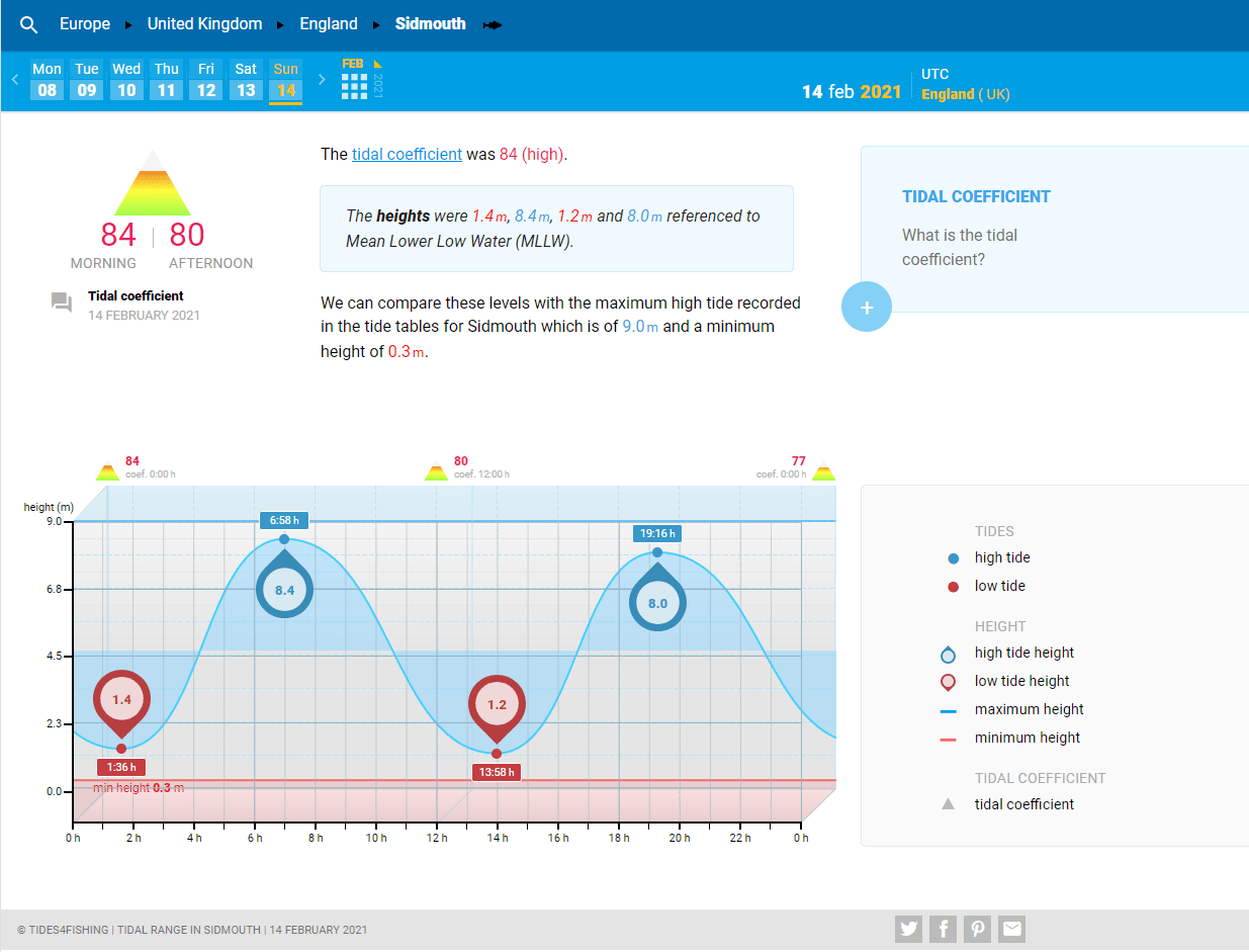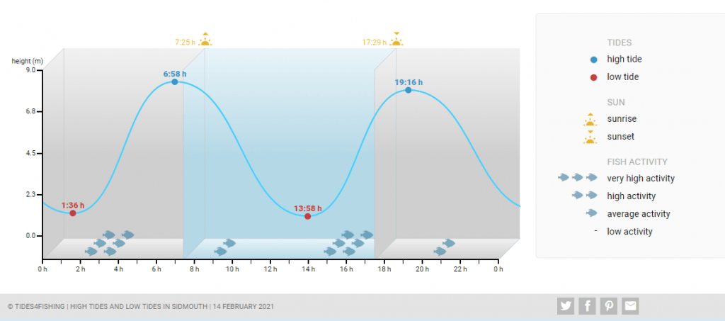 It has been a stormy few days with the winds running straight on to Sidmouth beach. The evening high tide was at 7.16 pm (19.16 hrs) according to Tides4fishing which give lots of useful data. They also said that the tide was high.