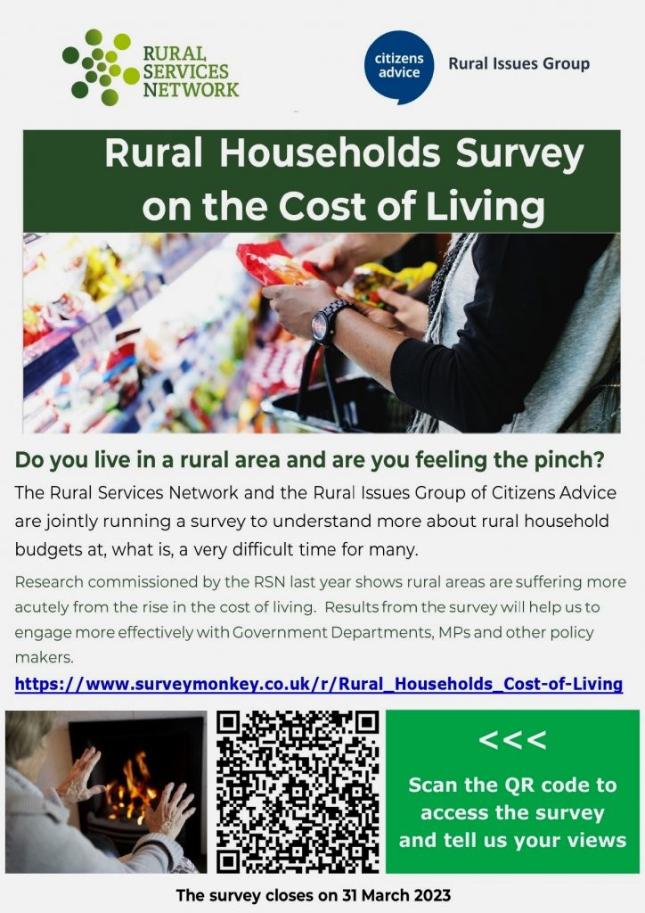 The Rural Services Network in partnership with the Citizens Advice Rural Issues Group launched a Rural Cost of Living Household Survey