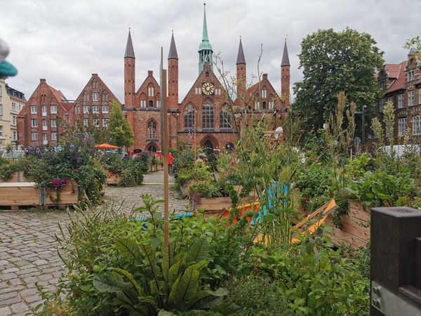 #WhatIf all our public squares were meeting places with sensory gardens: Another Lübeck marvel, the sensory garden in one of the public squares. It was created as an outdoor meeting space during the pandemic and proved so popular it has come back for another year.