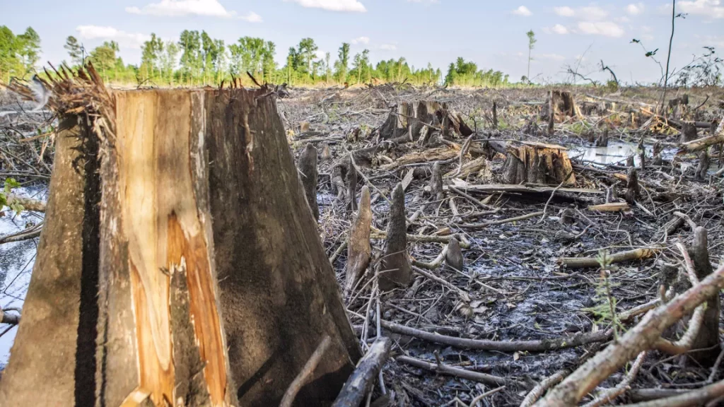 A cypress tree stump in a clearcut section of northeastern forest Credit:Dogwood Alliance