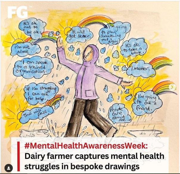This week in the UK it is Mental Health Awareness Week – and a dairy farmer captures her mental health struggles in bespoke drawings on the Farmers Guardian [see illustration]. It’s not easy, with Holly and Adam Atkinson balancing farming and family on an organic dairy farm by the coast in South Devon