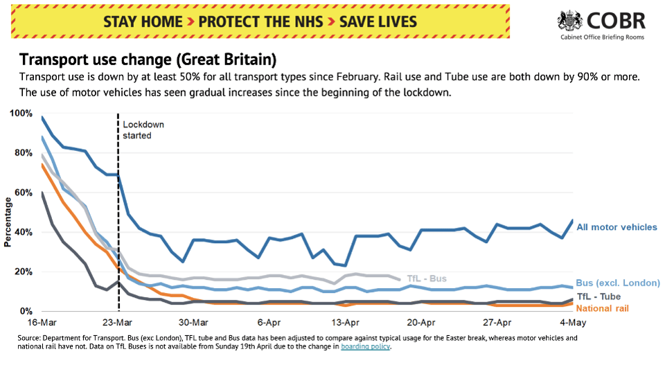 Just before the Prime Minister’s announcement last weekend, the government released figures showing the dramatic drop in transport