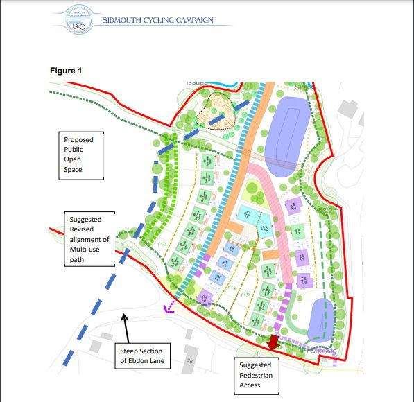 Similarly, the Sidmouth Cycling Campaign’s submission is very reasonable – welcoming the application but providing substantial comments, also in map form:
