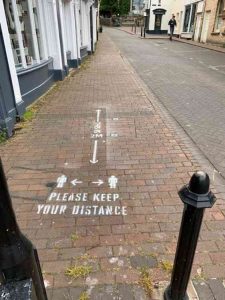 Social distancing signs stencilled in Sidmouth | sidmouth.nub.news