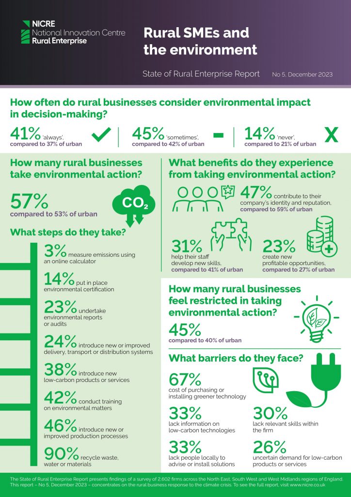 The National Innovation Centre for Rural Enterprise has just put together a report showing that whilst rural businesses consider the environment in decision-making, barriers still exist: