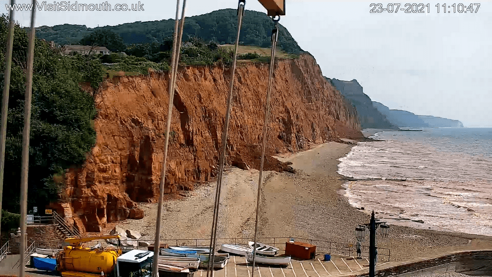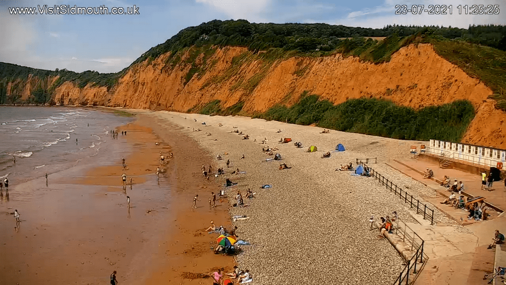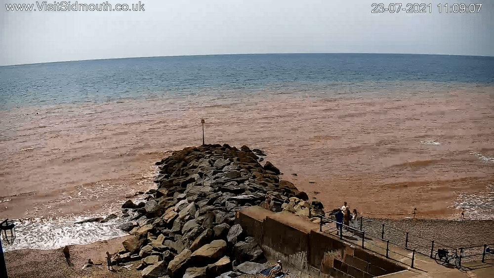 Images taken from Sidmouth webcams showed where the sea was full of sand and where it was not. There is a distinct line between the brown water carrying sediment and the blue not carrying much sediment.