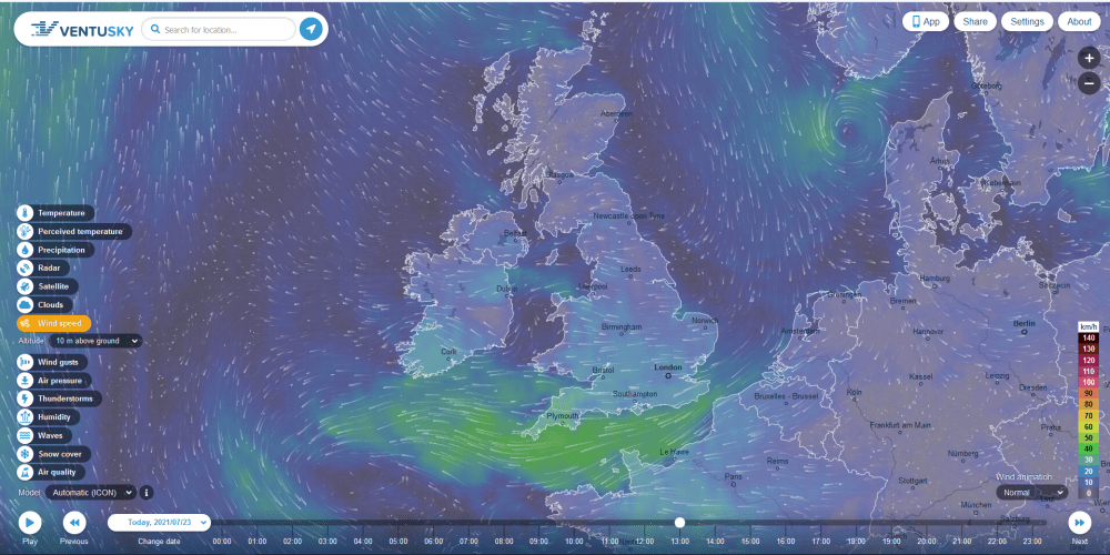 On 23rd of July 2021 the winds were from the east in the south of the country.