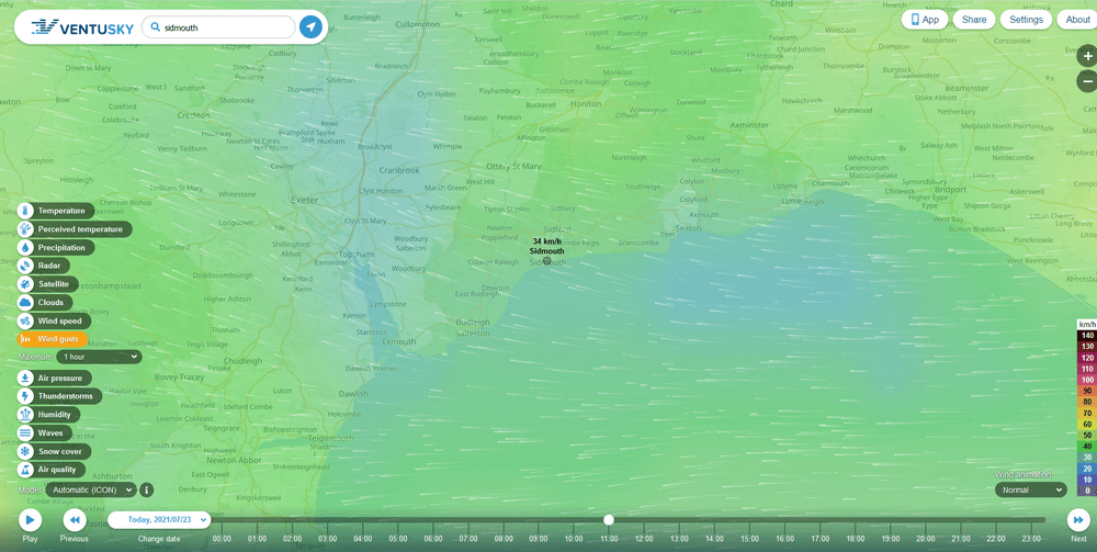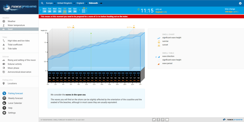 You can also see the wave direction at the beach is much more southerly than the weather maps would imply. It is important to remember that weather maps do not show local conditions very well as they can only give general flows. Even the maps showing Sidmouth in detail do not reflect the waves you can see in the pictures above.
