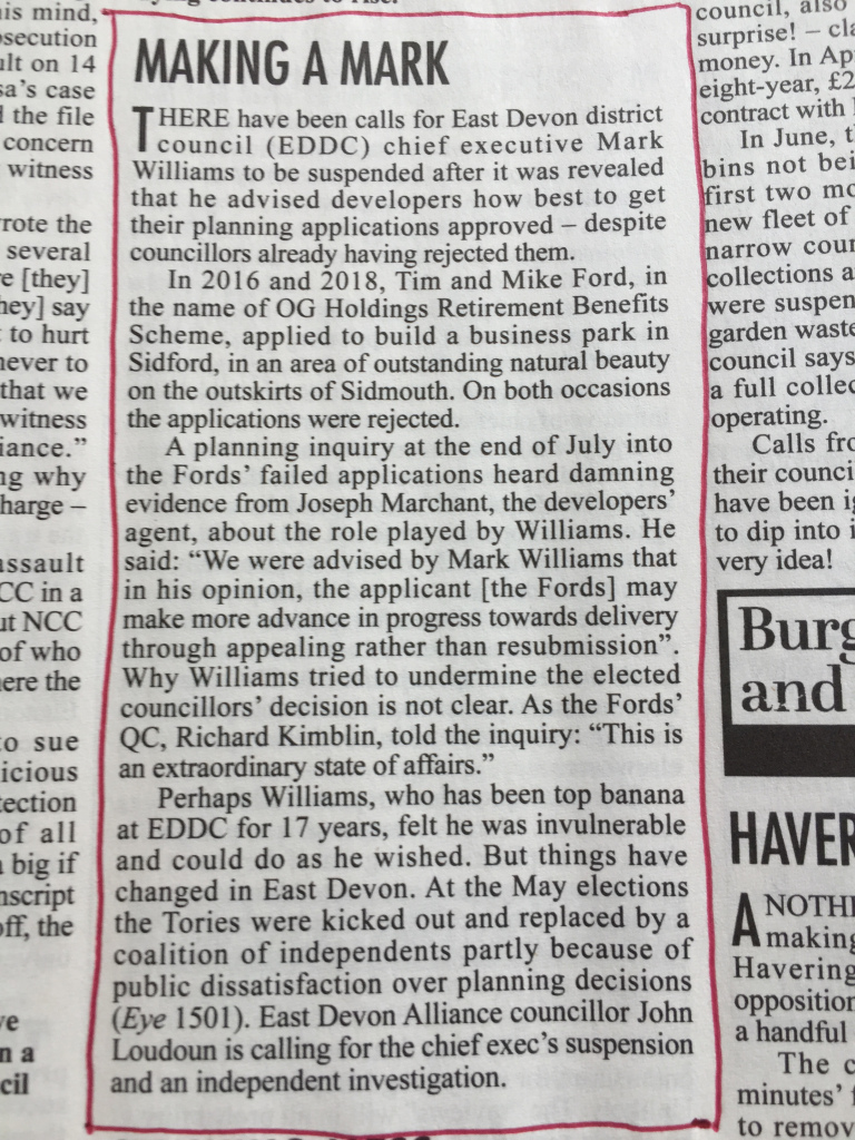 Planning Inquiry evidence raises serious questions for EDDC Chief Executive