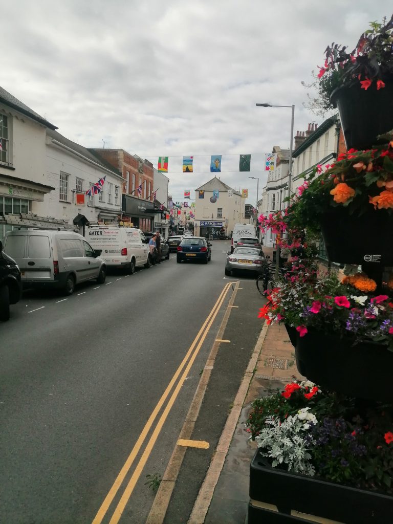 One of those organisations is the VGS’s very own Sidmouth Cycling Campaign – with its contribution flying on social media where we can find it thanks to the SCC’s very own in-house artist: “Well done to Sue Stanbury for making our flag in the High Street as part of the Festival of Flags!“