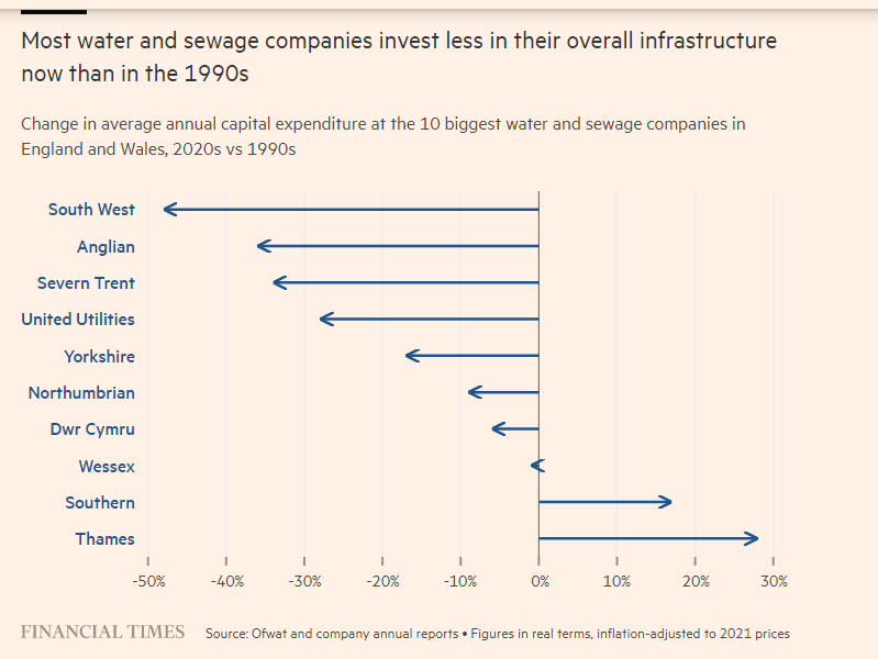 England’s water groups slashed investment in sewage network in recent decades | ft.com
