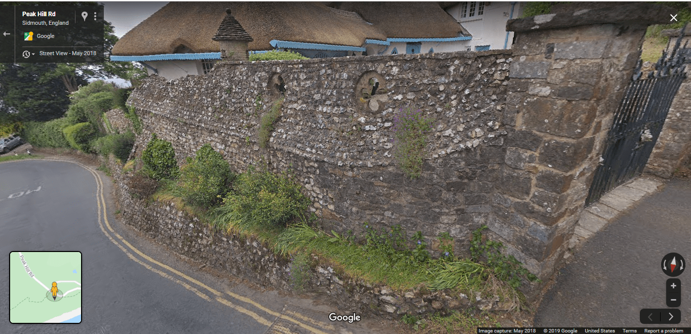Flint wall, Peak Cottage, Peak Hill, Sidmouth: copyright: Google Maps